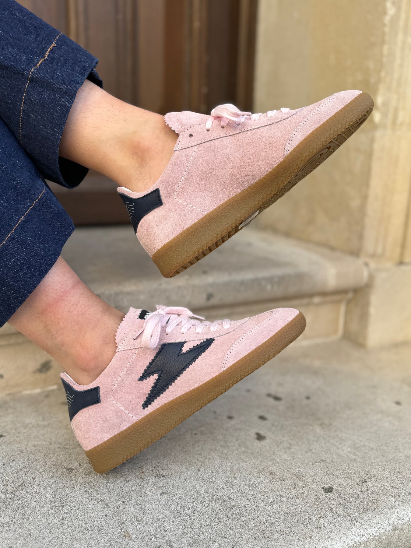Baskets basses en suédine rose poudrée avec éclair marine ASLAN B101 Semerdjian