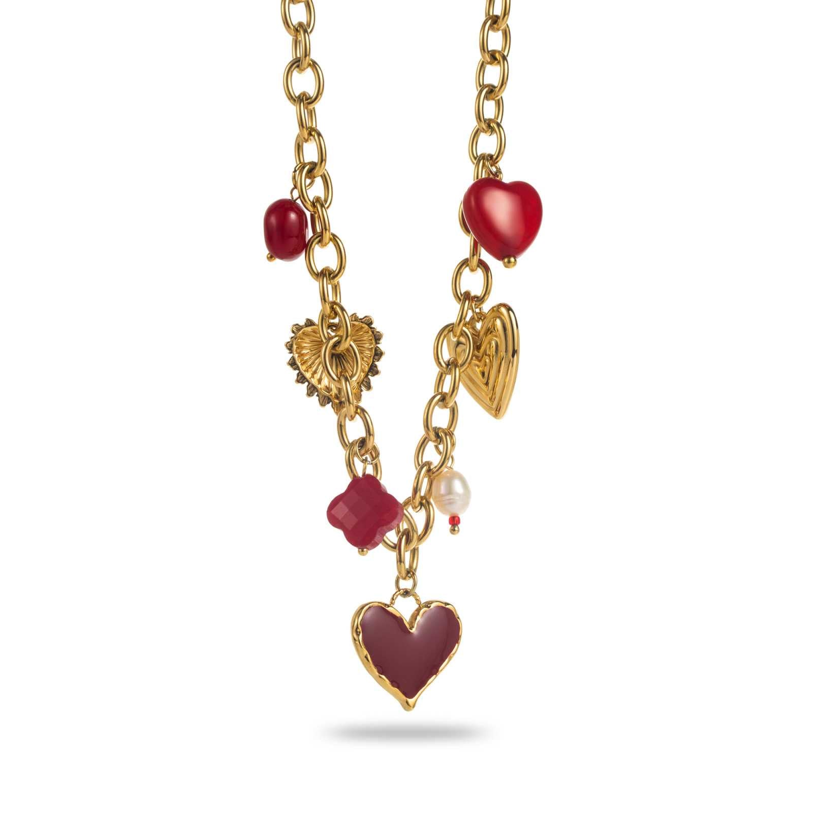 Craquez pour ce collier multicœur en acier inoxydable doré, un bijou tendance qui allie élégance et symbolisme. Orné de cœurs bordeaux et de médaillons dorés, il apporte une touche romantique et raffinée à vos tenues.