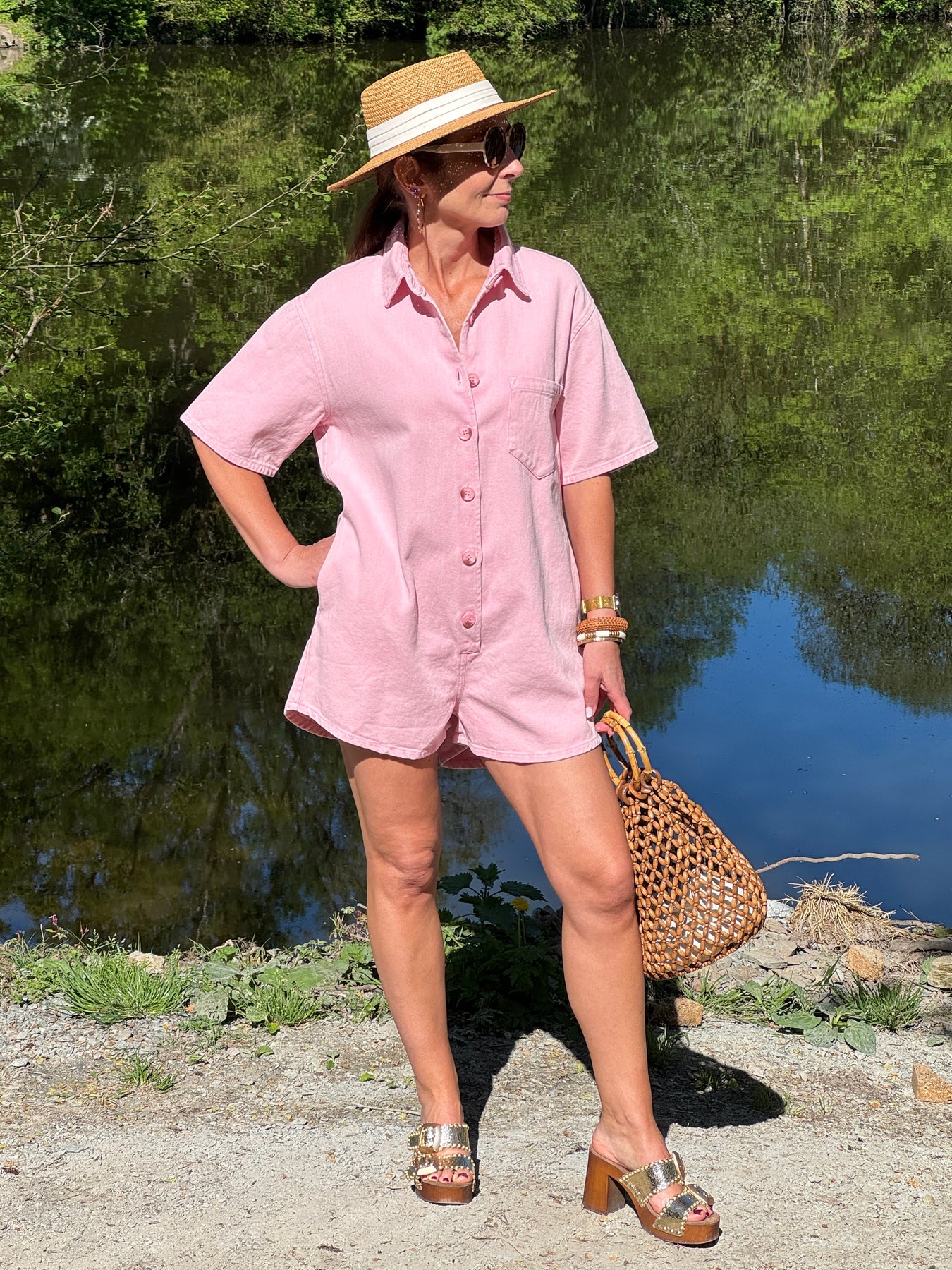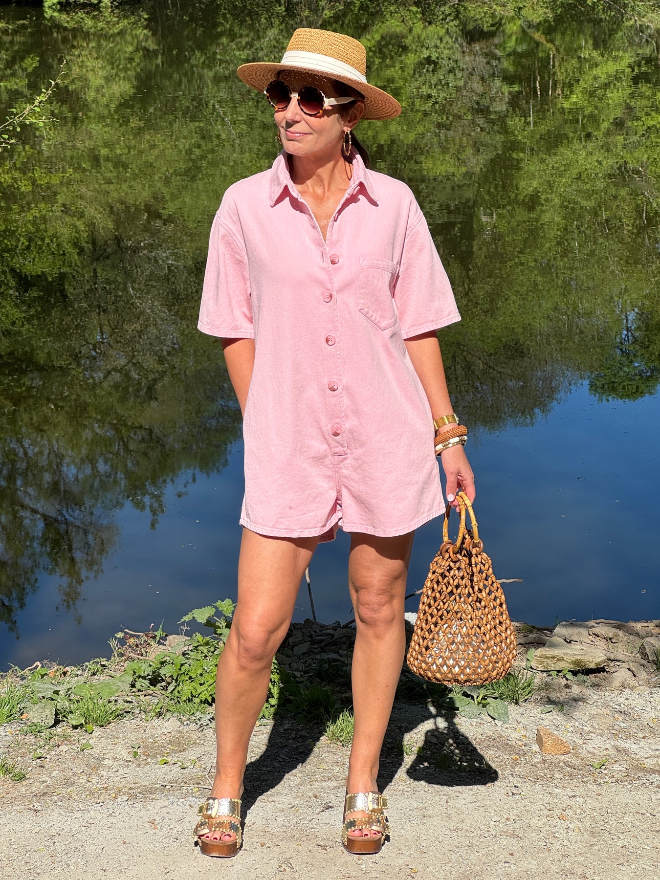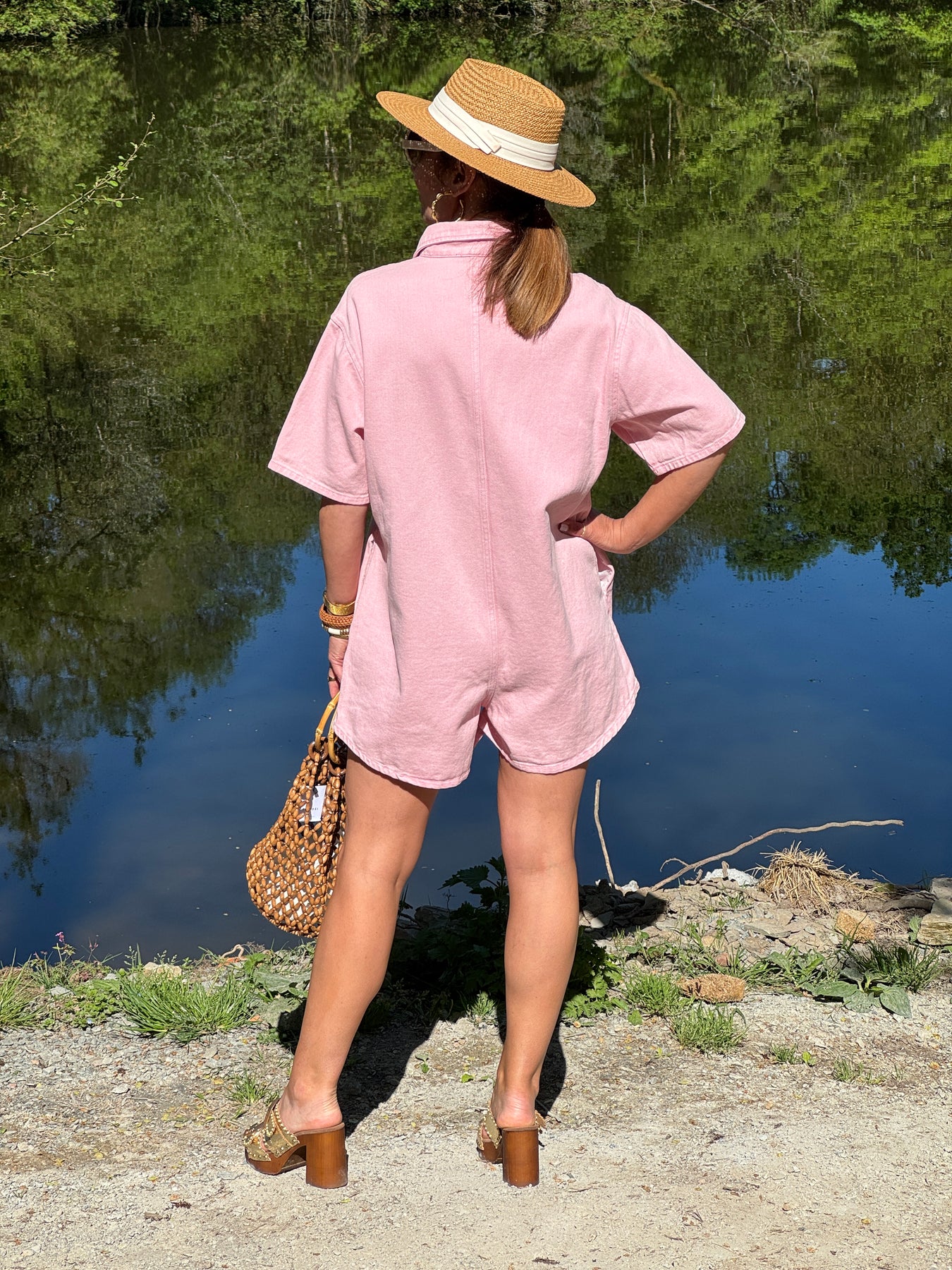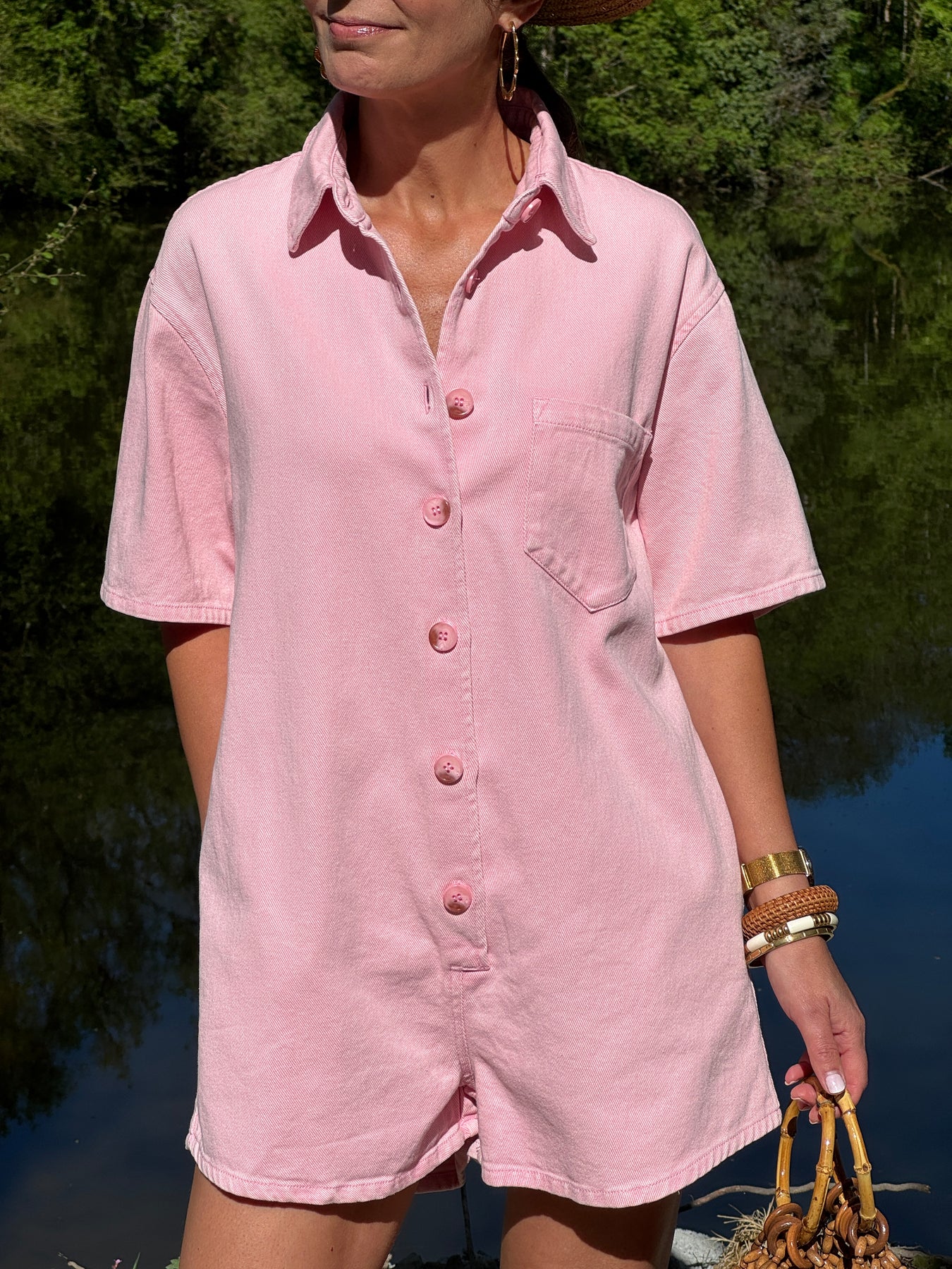 Retrouvez la combi-short MARLENE rose Oraije dans votre boutique De La Mode La Rochelle, une pièce tendance, confortable et incontournable.