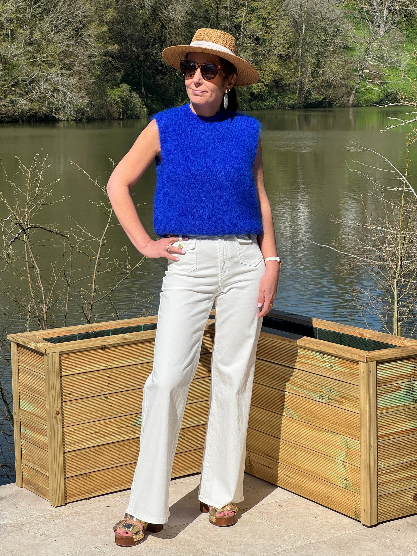 Pull sans manches bleu royal col rond pour un look chic et contemporain idéal mi-saison