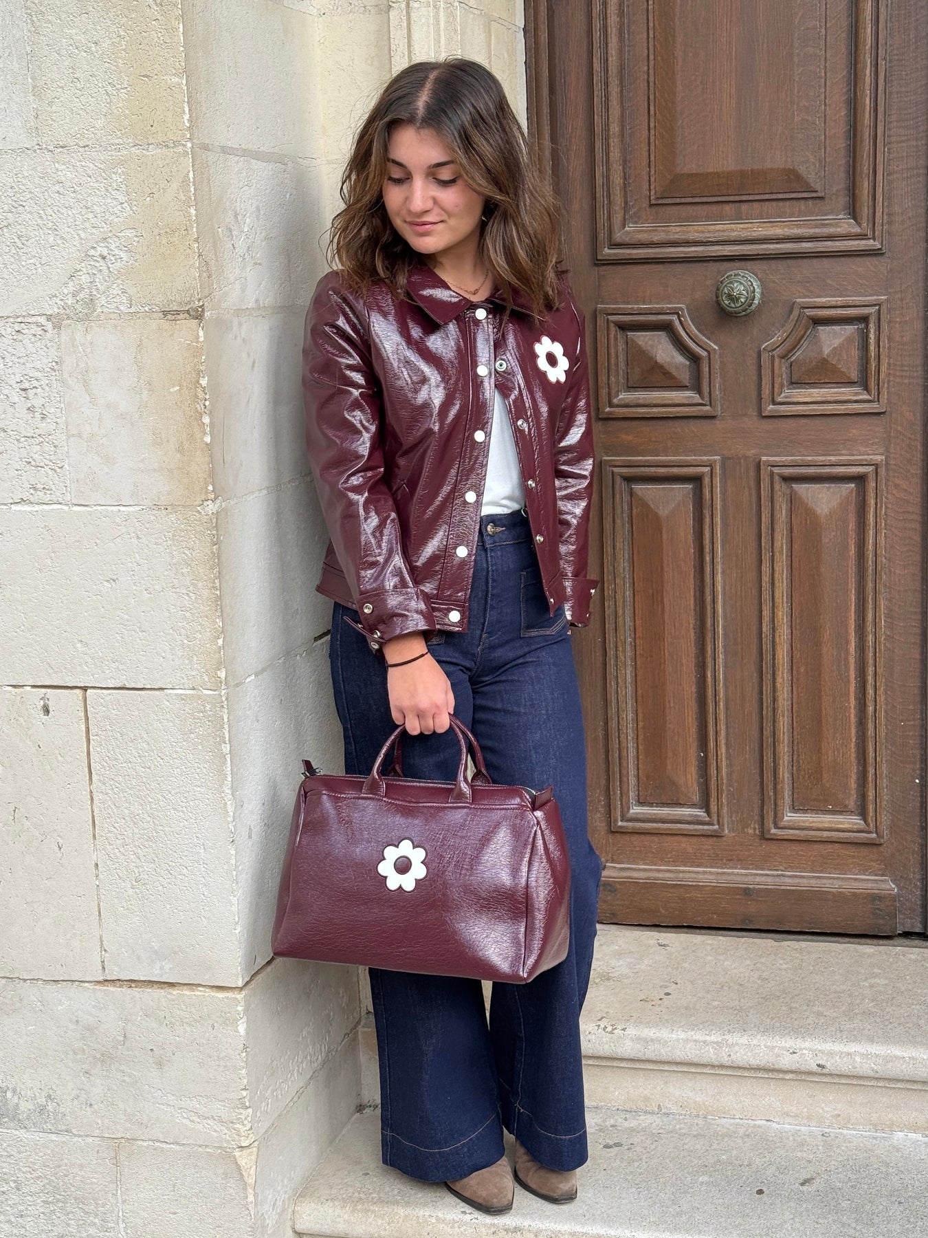 Dank ihrer ikonischen Bowlingtaschenform ist sie die ideale Handtasche : geräumig, ohne klobig zu wirken. Besonders gefällt uns das charakteristische Detail: eine weiße Vinyl-Gänseblümchenblüte auf der Vorderseite, das Emblem der Marke Hippocampe , die ihr eine fröhliche und unverwechselbare Note verleiht.