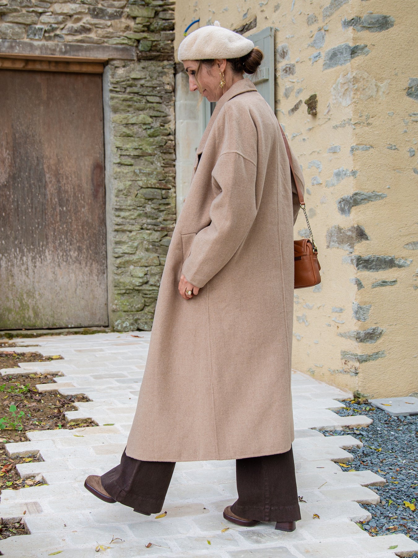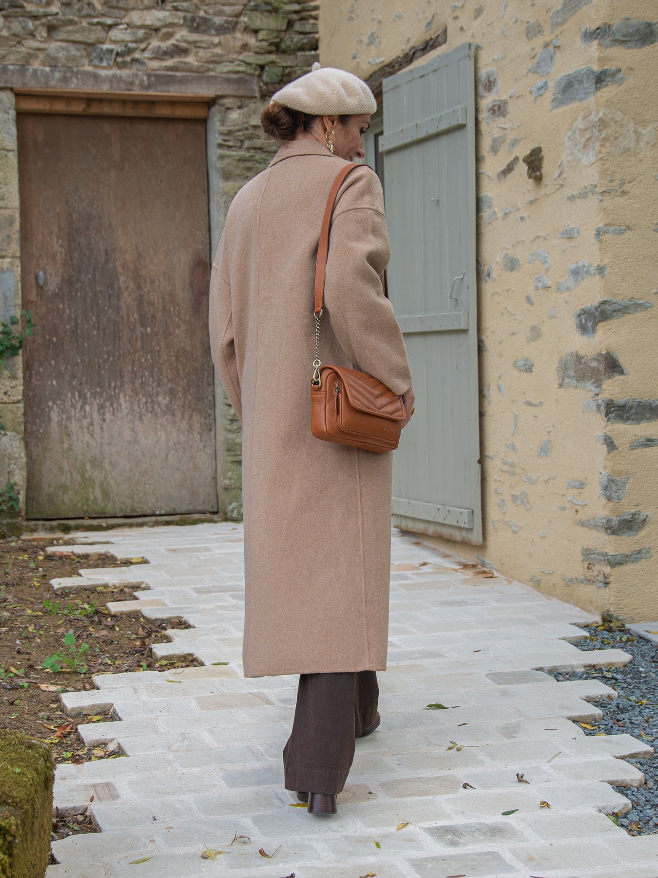 Entdecken Sie den Ninon-Mantel in Kamelfarbe , ein Must-have für einen schicken und raffinierten Look. Der maßgeschneiderte Kragen und der lange Schnitt verleihen all Ihren Outfits Eleganz und Raffinesse.