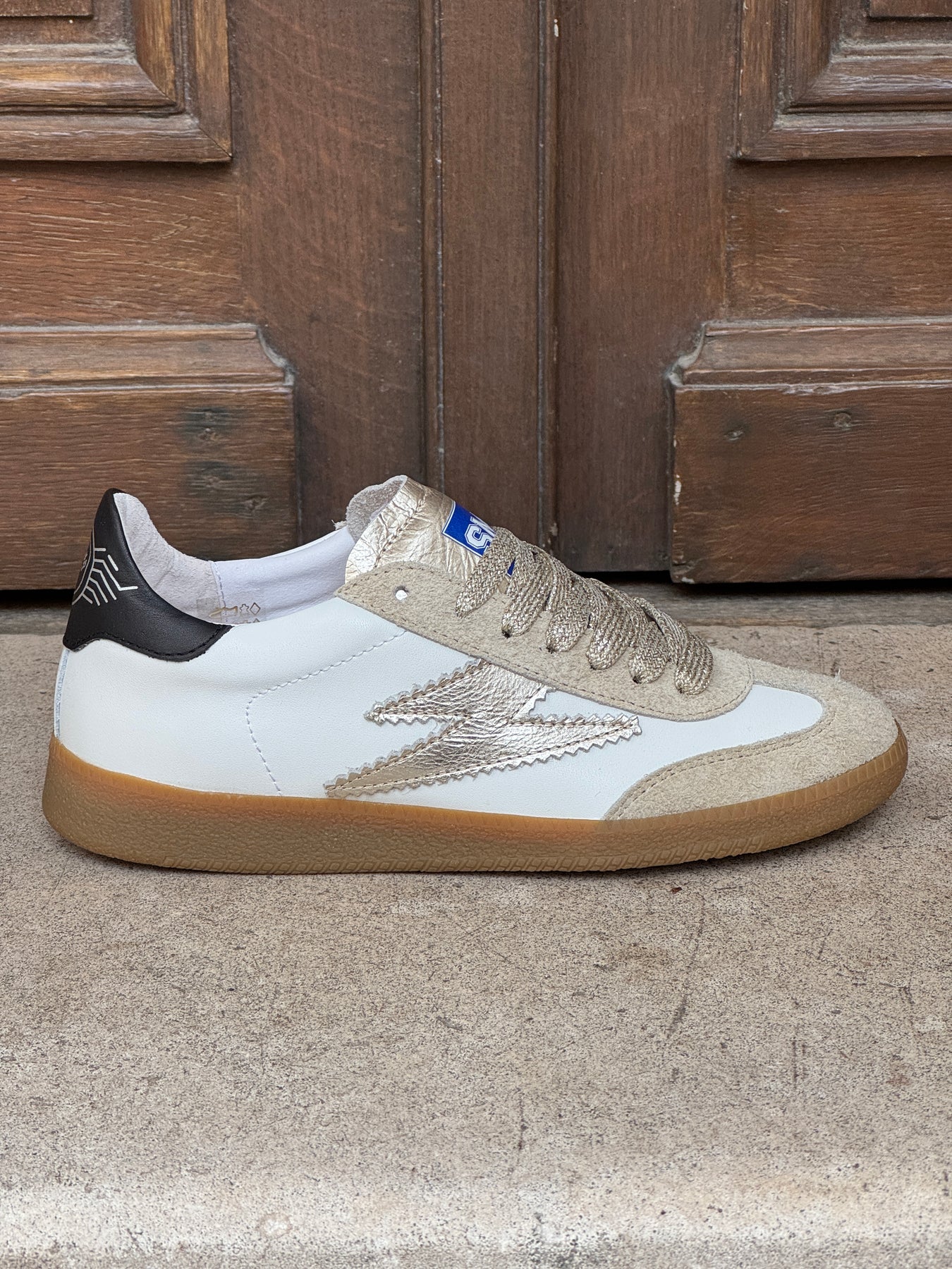 Retrouvez la basket en cuir lisse blanche avec l'éclair doré Emily D331 signé Semerdjian dans votre boutique De La Mode la Rochelle.