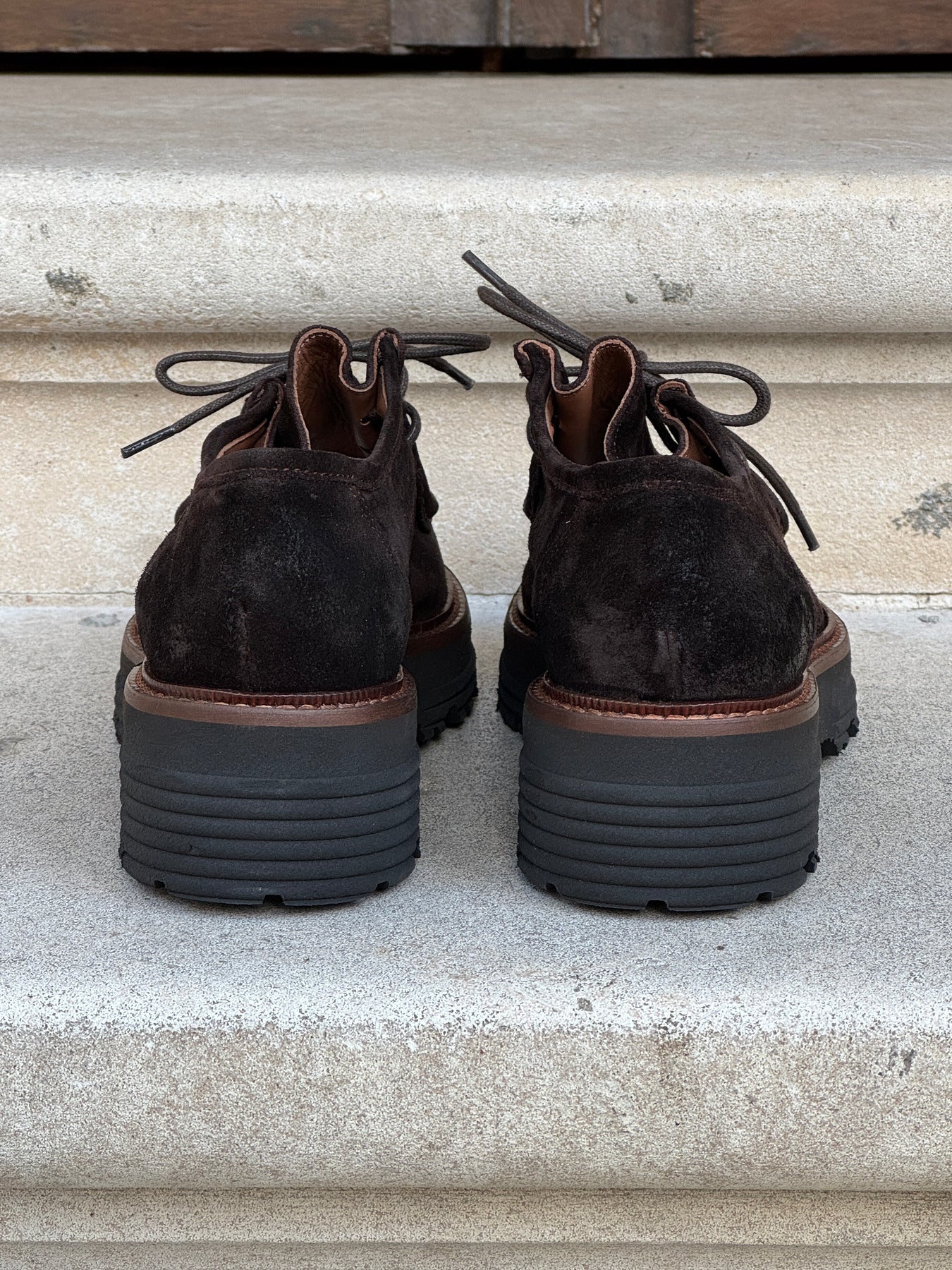 Die schokoladenbraunen Derbys von Semerdjian passen perfekt zu eleganten Hosen, Raw-Denim-Jeans oder einem Midirock und sorgen für einen schicken und selbstbewussten Look. Ihr warmer Farbton und die zeitlose Silhouette machen sie zu einem unverzichtbaren Kleidungsstück in jeder Garderobe – elegant und bequem zugleich.