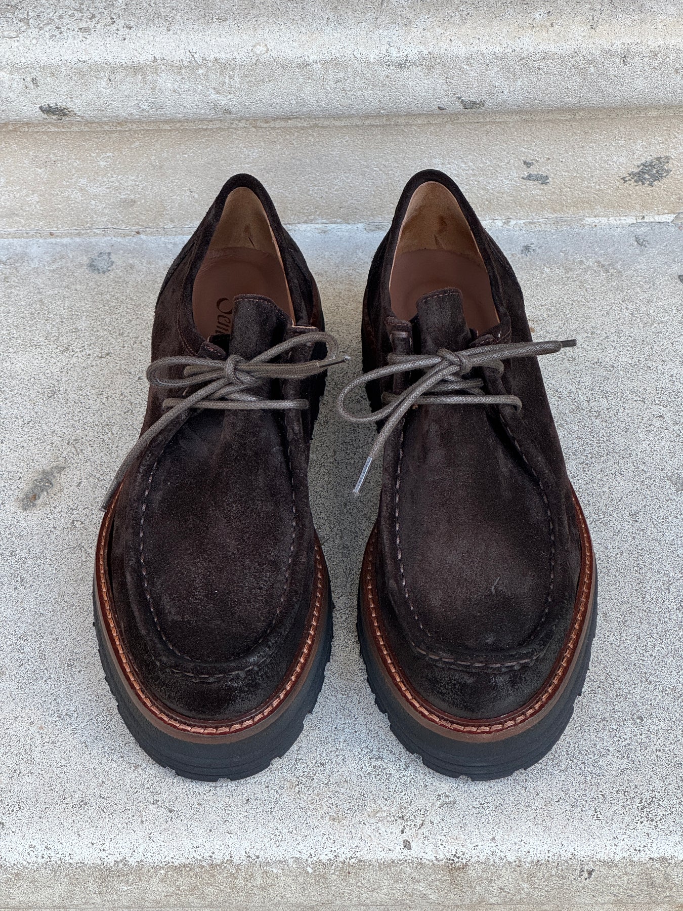 Die Schuhe 213-100 von Semerdjian vereinen Komfort, Stil und handwerkliche Perfektion. Diese schokoladenbraunen Leder-Derbys bestechen durch ihre zeitlose Eleganz und die sorgfältige Verarbeitung. Mit ihrem stilvollen Design und dem warmen Farbton verleihen sie jedem Outfit – vom Alltag bis zu festlichen Anlässen – eine raffinierte Note.