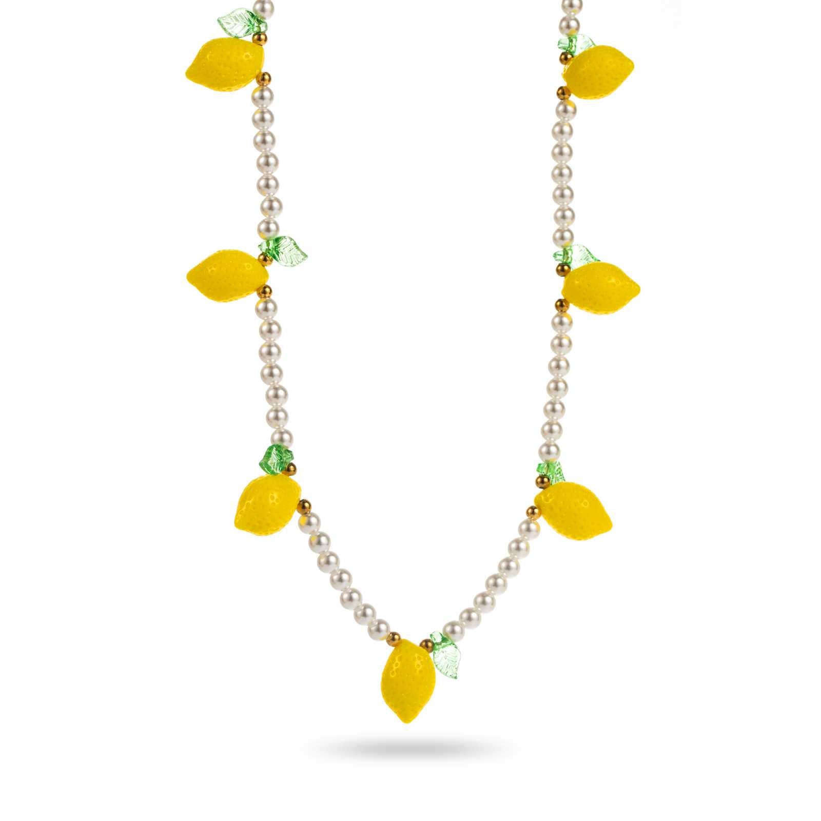 Fall in love with this refreshing white pearl necklace adorned with ultra-realistic lemon yellow tassels . A piece of jewelry full of pep, ideal for brightening up your summer outfits.