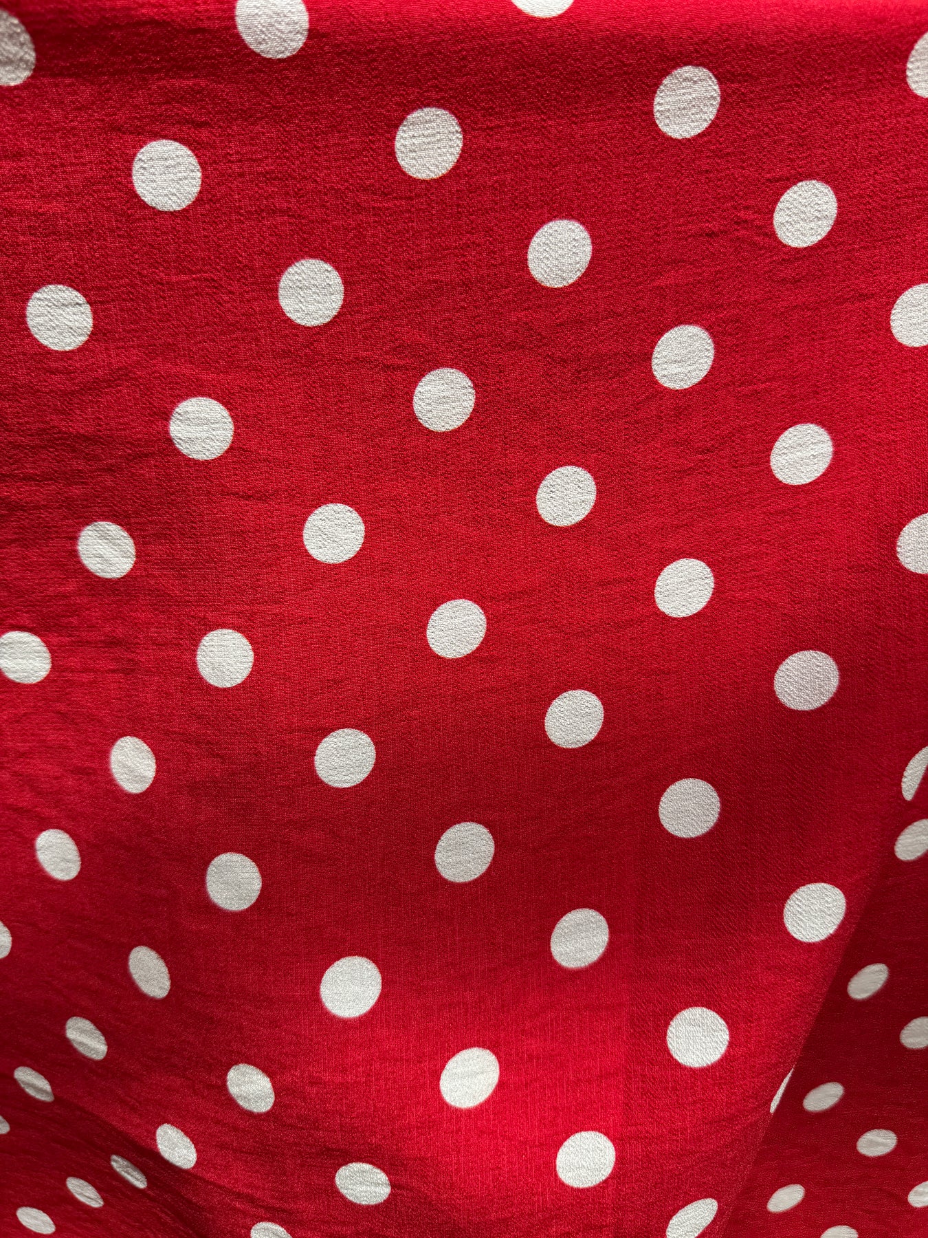 Cette robe est parfaite pour celles qui recherchent à la fois confort et style. Sa couleur rouge sublimée par des pois couleur crème et sa coupe intemporelle en font un choix parfait pour un look à la fois décontracté et chic.