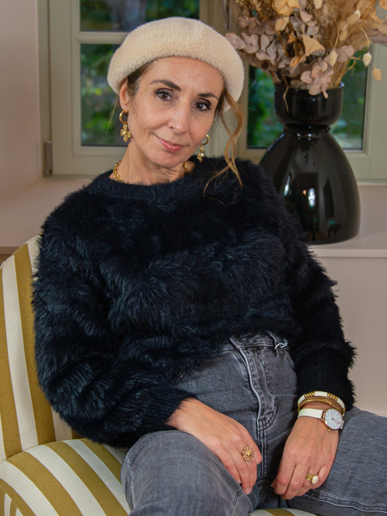 Retrouvez ce pull noir à poils doux dans vos boutiques De La Mode la Rochelle, la Châtaigneraie et Fontenay-le-Comte.