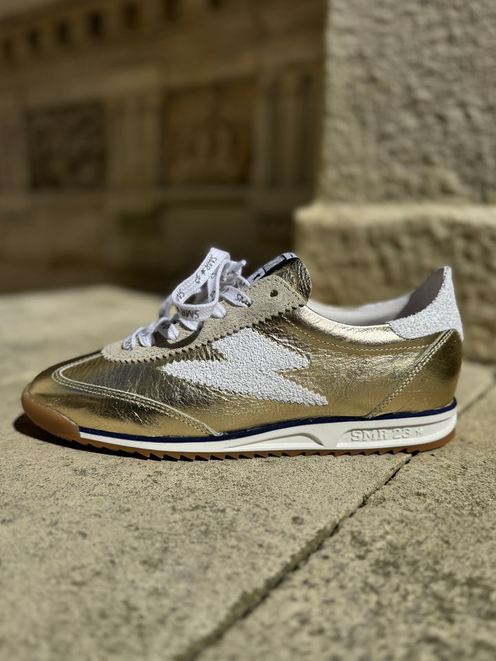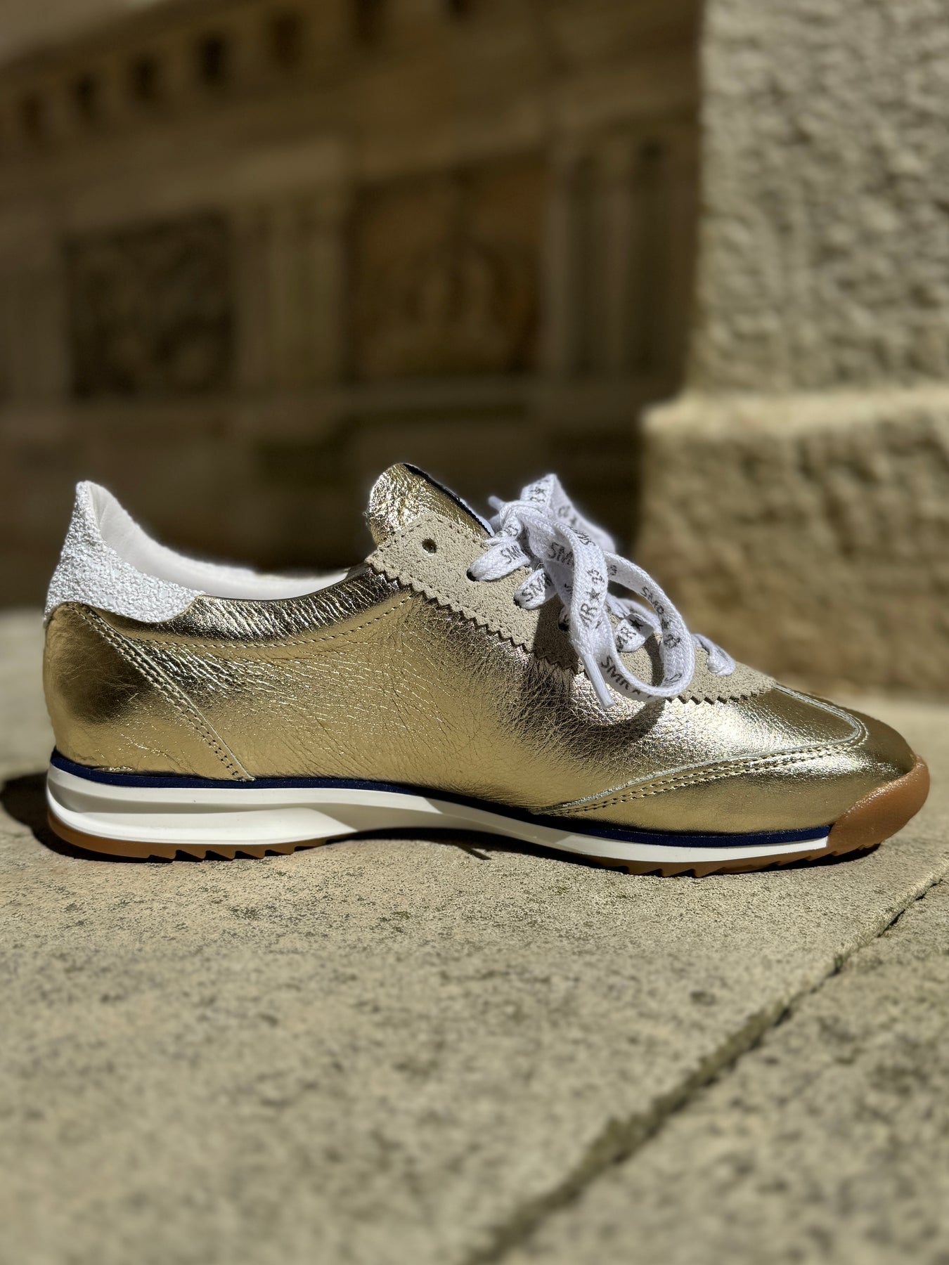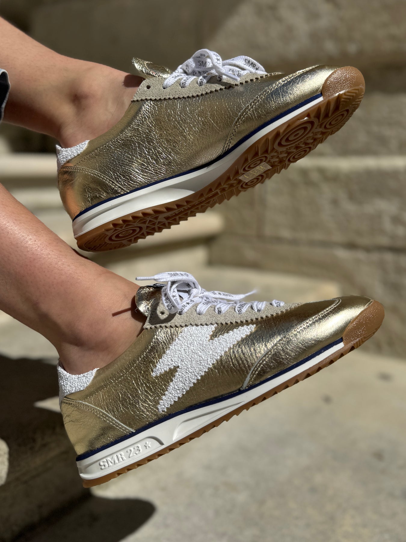 Retrouvez ces baskets en cuir doré avec leur éclair blanc JOYCE C135 signée Semerdjian dans votre boutique De La Mode la Rochelle.