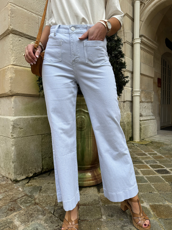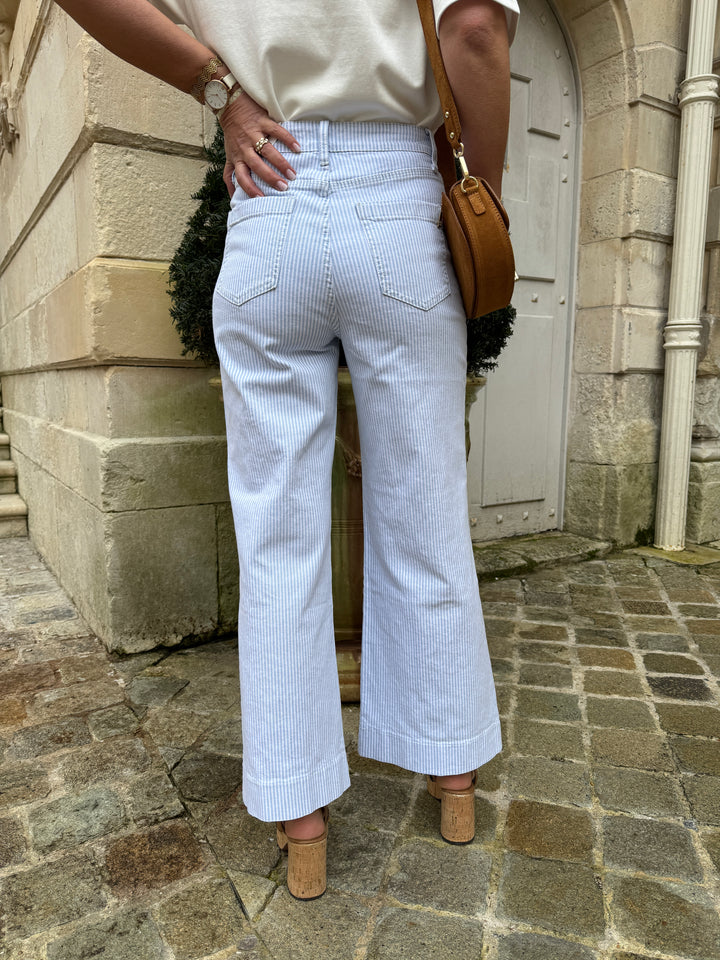 Ce jeans denim rayé bleu GASPARETTE signée Oraije est à retrouver dans votre boutique De La Mode la Rochelle.