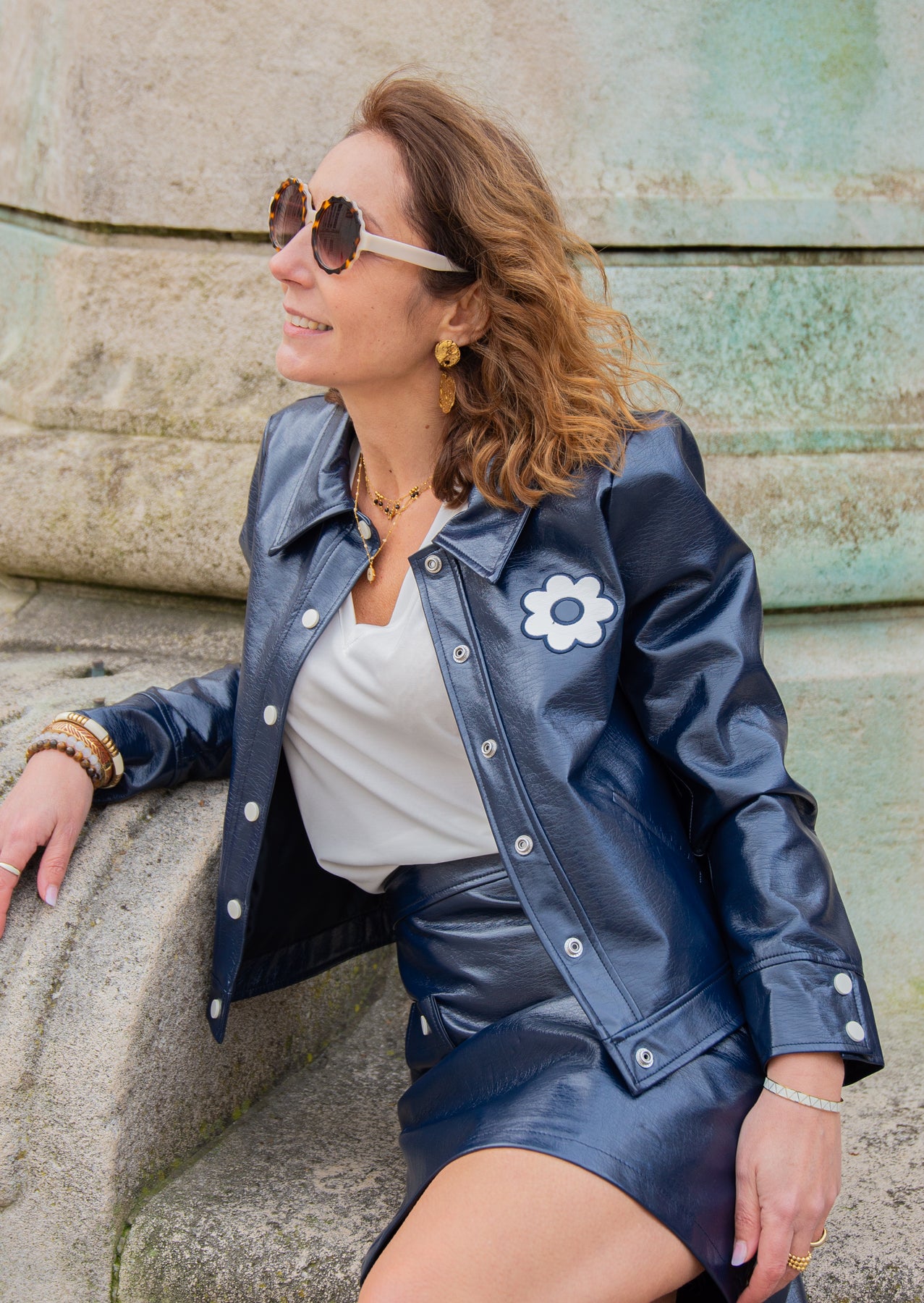 Cette jupe se marie parfaitement avec notre veste en vinyle marine DAISY.