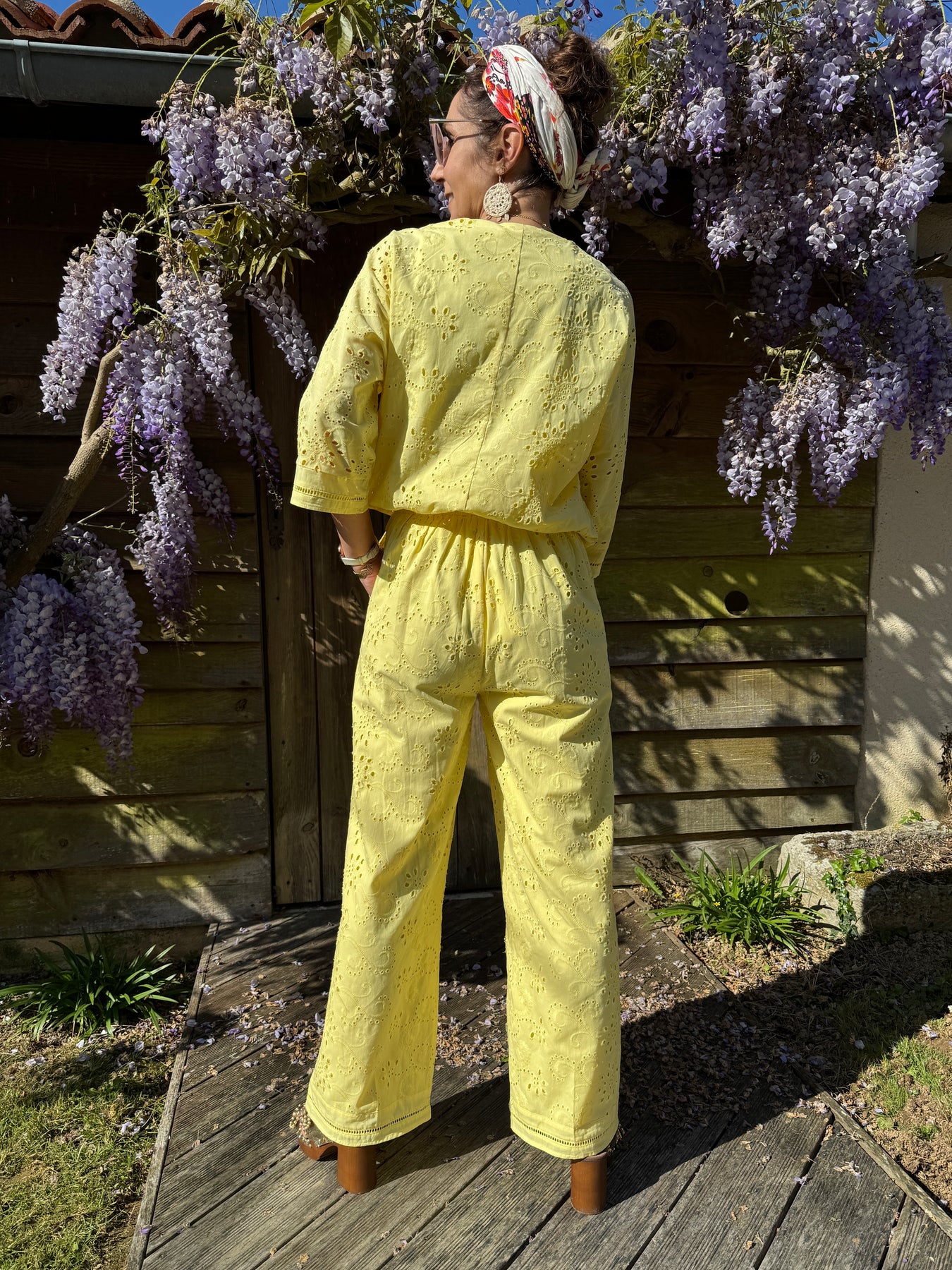 Ce pantalon se marie parfaitement avec notre blouse CARMEN jaune.