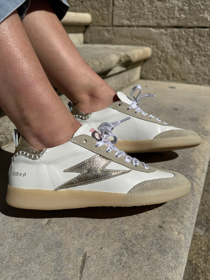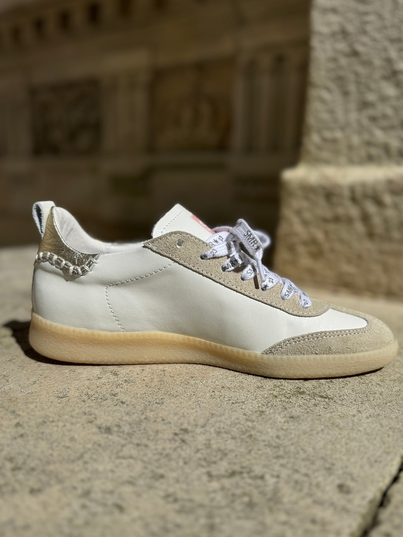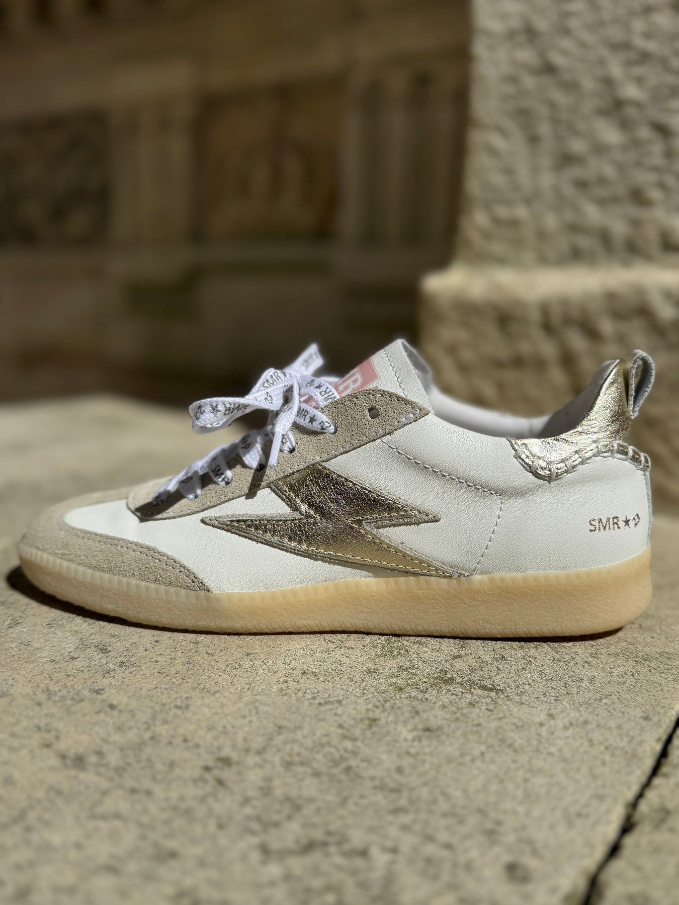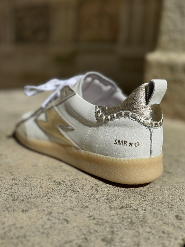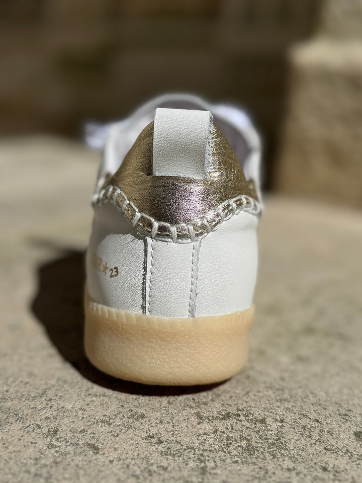 Retrouvez ces baskets blanche et doré en cuir KAYLA C141 signée Semerdjian dans votre boutique De La Mode la Rochelle.