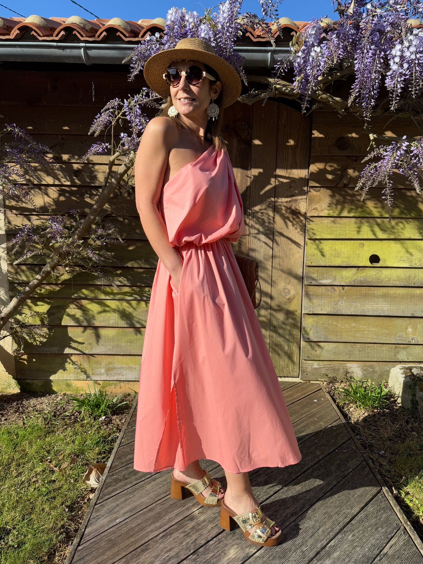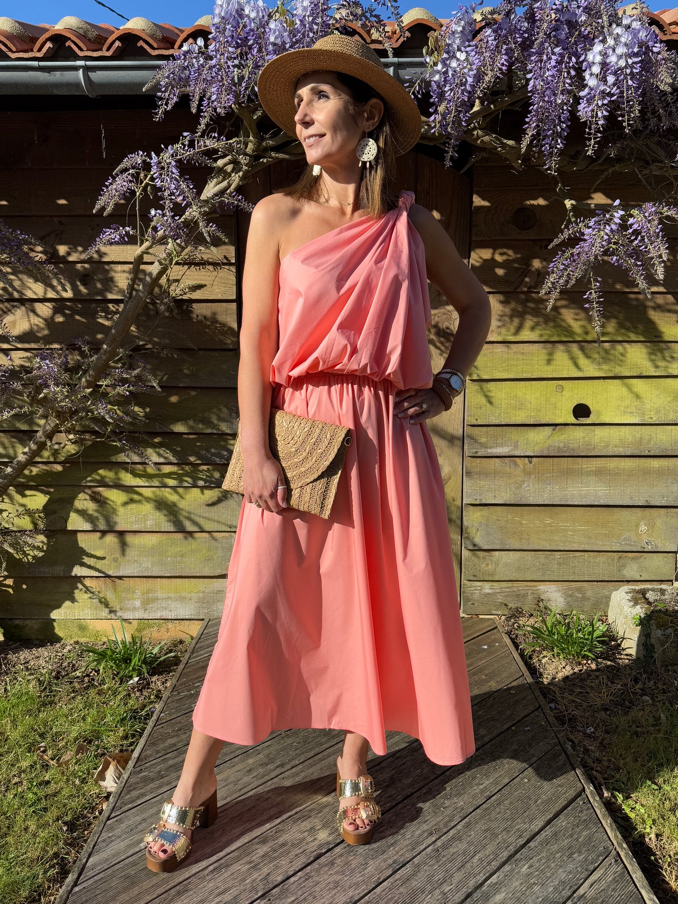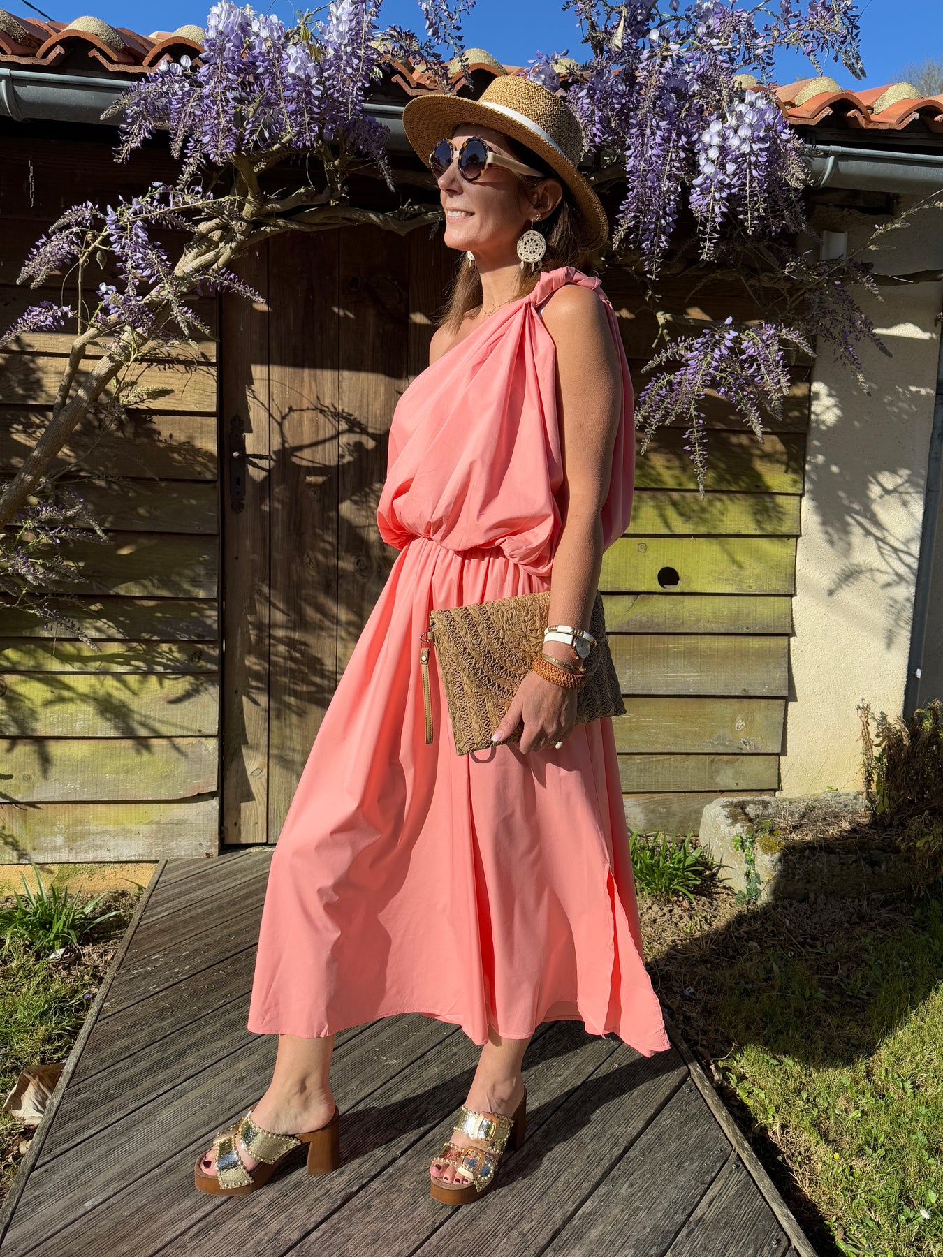 Cette ensemble asymétrique orange est à retrouver dans votre boutique De La Mode la Rochelle.