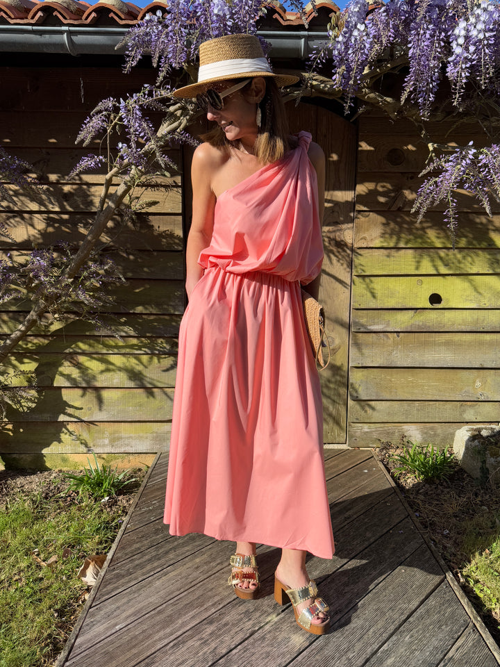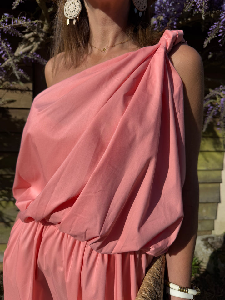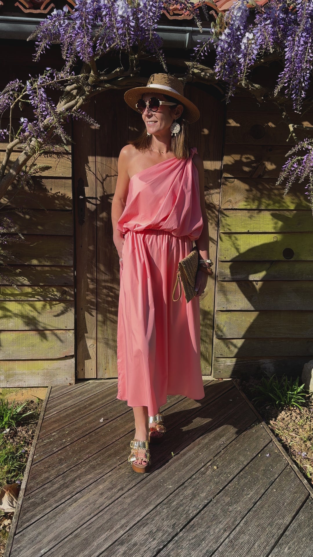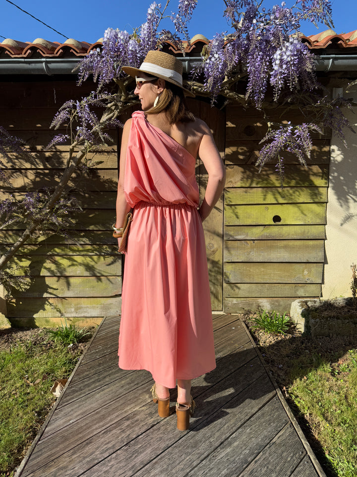 Cette ensemble asymétrique orange est à retrouver dans votre boutique De La Mode la Rochelle.